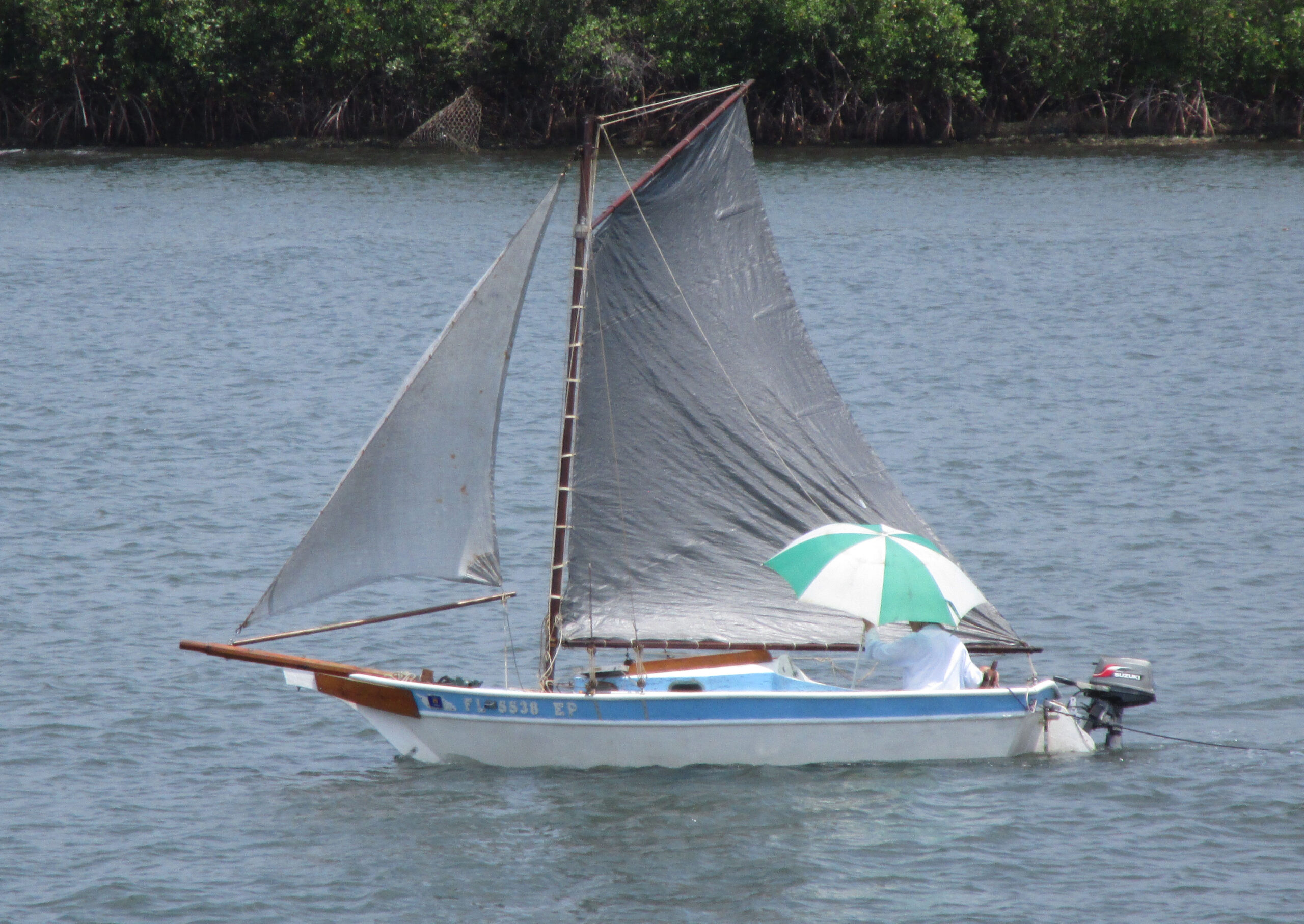 Start off above with a buttercup-cute little gaff sloop, just big enough for its parasol-wielding helmsman. I mean, is that sweet or what.