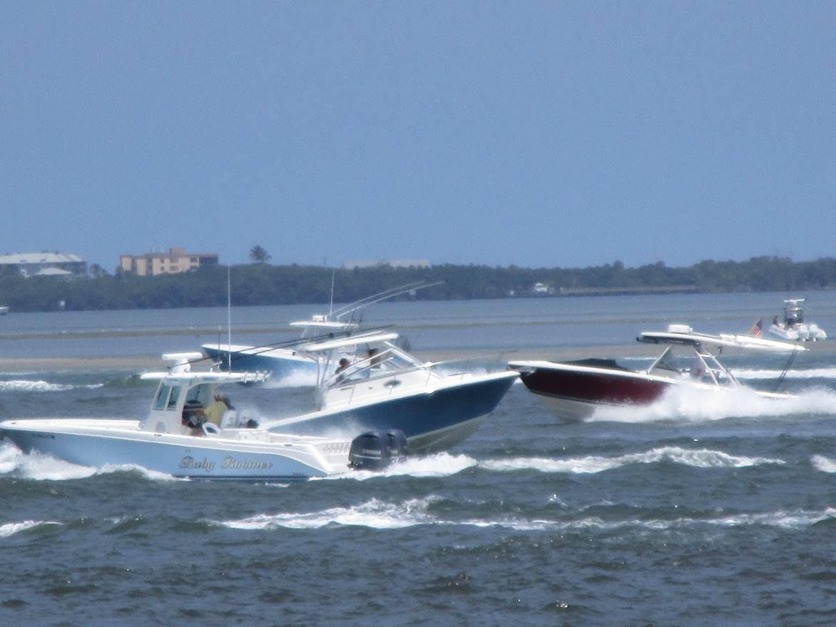 It is a maelstrom of boats roaring in and out the inlet and up and down the ICW. From what I can see through binocs, boats are not beaching on sandbars, maybe because the local boat fuzz are patrolling: